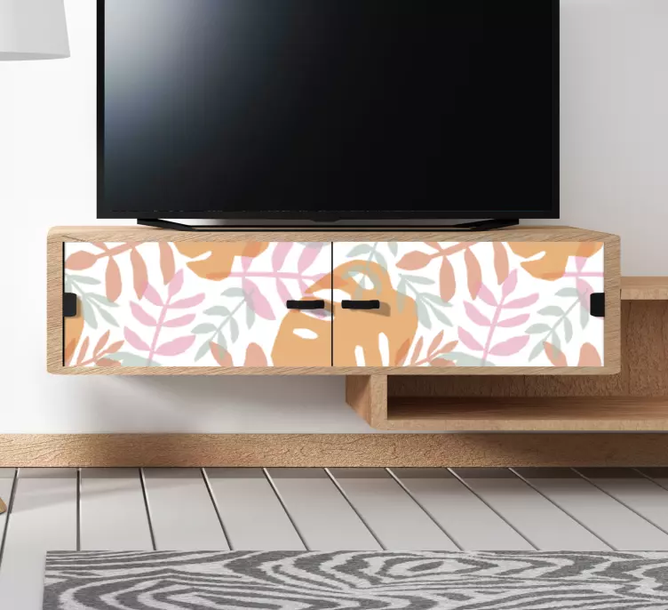Referens: A53791Ett livfullt mönster med en mängd olika blad i olika former och färger. Denna design ger en livlig känsla, perfekt för att förbättra inredningar med en naturlig charm och skapa en uppfriskande atmosfär. Idealisk för att ge en unik stil till möbler och heminredning.