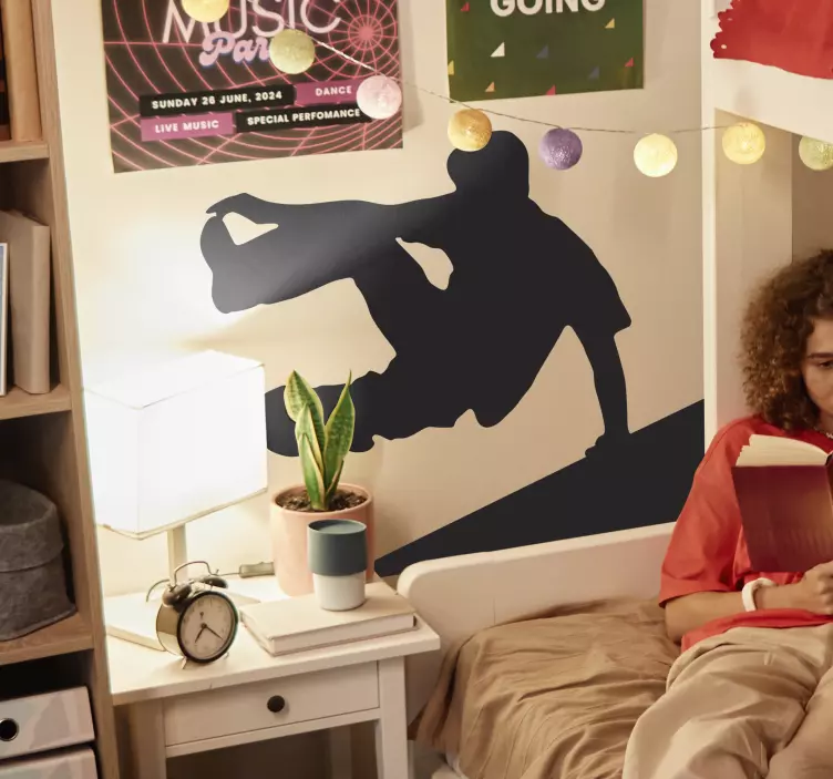 Lägg till några åtgärder på väggarna i ditt sovrum i vilken färg du vill med den här parkourmuren. Om du älskar parkour och fri körning, kommer du att älska denna fantastiska action skott vägdekal av den bästa extrema sporten.