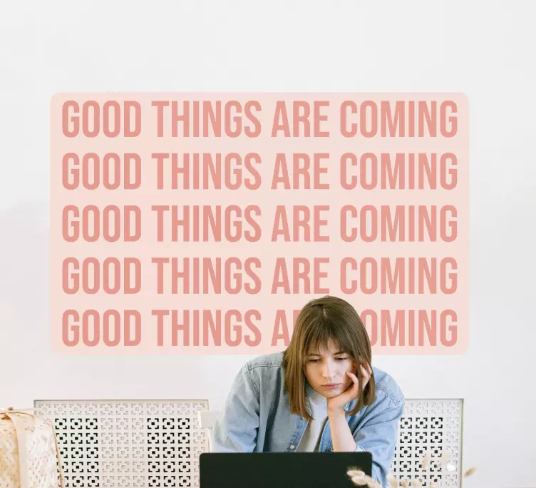 Referens: A48437Designen har en upplyftande fras som betonar optimism och motståndskraft. Dess repetitiva natur förstärker budskapet och skapar en tröstande och uppmuntrande atmosfär. Idealisk för utrymmen som främjar positivitet, fungerar den som en påminnelse om att goda saker är på väg.