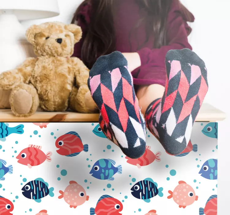 Den här förtjusande dekoren med fiskmönster är perfekt för att ge dina barnmöbler och andra utrymmen en lekfull touch. Den är mycket enkel att applicera och självhäftande, så du behöver inte oroa dig för att använda externt lim. Dessutom kan du ta bort den när du vill utan problem. Den veckas inte eller gör bubbla effekt när den appliceras, och den är både tvättbar och motståndskraftig mot yttre påverkan.