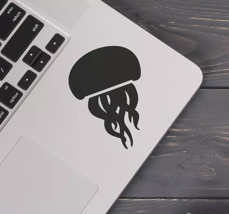 Upptäck vår Stylisk manet silhuett laptop klistermärke, som erbjuder en unik och minimalistisk illustration av en manet. Denna design fångar essensen av marin liv och havets mystik, perfekt för den som älskar havet och dess skönhet. Med sin eleganta silhuett tillför den en modern touch till din laptop som verkligen sticker ut!