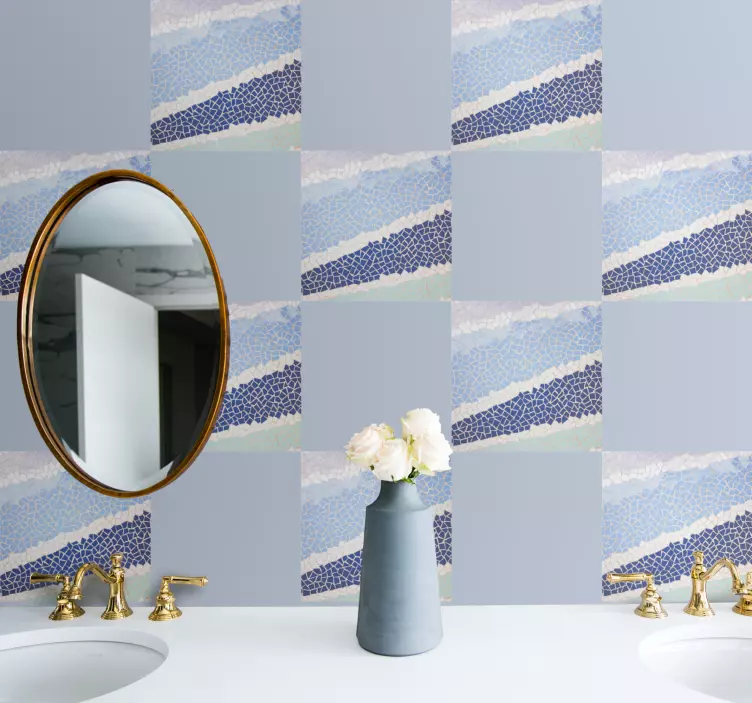 Referens: A51654Ett abstrakt mönstrat mosaik med texturerade vågiga mönster i varierande blå nyanser. Denna fängslande komposition tillför djup och sofistikering, perfekt för att förbättra inredningsutrymmen. Samverkan av former skapar en dynamisk visuell upplevelse som drar blicken till sig, vilket gör det till ett slående val för modern inredning.