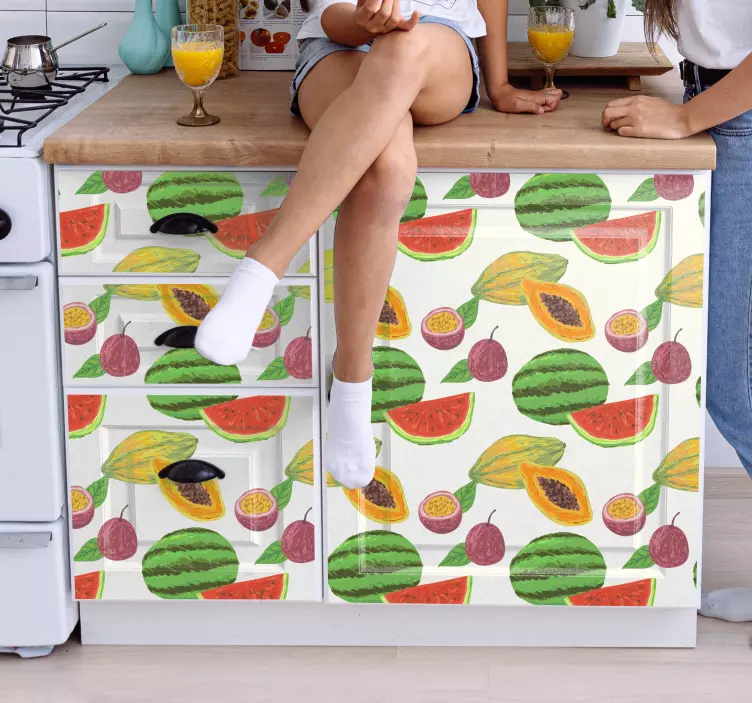 Referens: A51355En livlig uppställning av olika frukter, inklusive watermelon, papaya och passionfruit, skapar en inbjudande och glad estetik. Denna livfulla avbildning förbättrar atmosfären i vilket kök som helst, vilket gör det till ett härligt fräscht tillskott till hemmet.