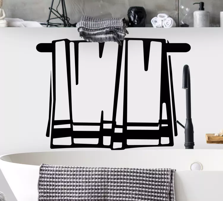 Referens: A48695Detta konstverk visar en elegant och modern representation av handdukar som hänger på en ställning. Den minimalistiska designen gör det till ett perfekt tillskott i alla badrumsmiljöer, vilket förbättrar rummet med stil samtidigt som en funktionell estetik bibehålls.