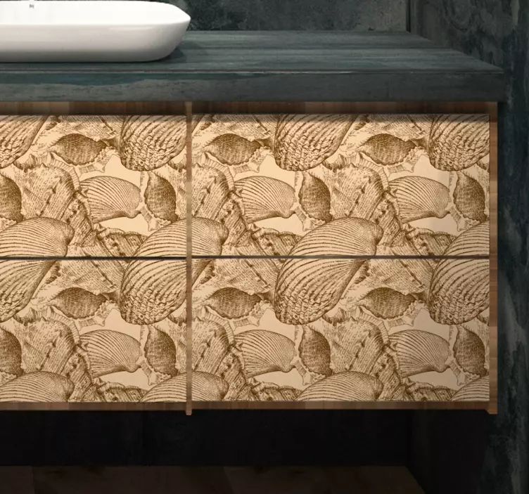 Denna vackra dekal med en vintage bakgrund och snäckskal design kommer att ge en fantastisk look till dina möbler. Perfekt för framtida sovrum för både barn och vuxna, en bra idé för vardagsrumsmöbler och köksskåp. Våra dekorativa möbler dekaler kan anpassas till alla dimensioner som behövs för ditt utrymme och är självhäftande och super lätt att applicera.